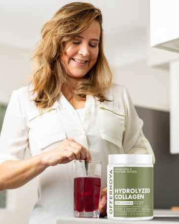 Huesos saludables + apoya la salud de las articulaciones: suplementar con colágeno hidrolizado, uno de los bloques de construcción más importantes del cuerpo, ayuda a reducir y revertir el agotamiento de colágeno que ocurre a medida que envejecemos.